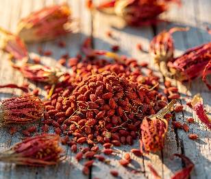 홍화씨는 붉은 꽃을 피우는 홍화 식물의 씨앗입니다. 씨앗에는 지방산과 항산화 성분이 풍부하게 함유되어 있습니다.